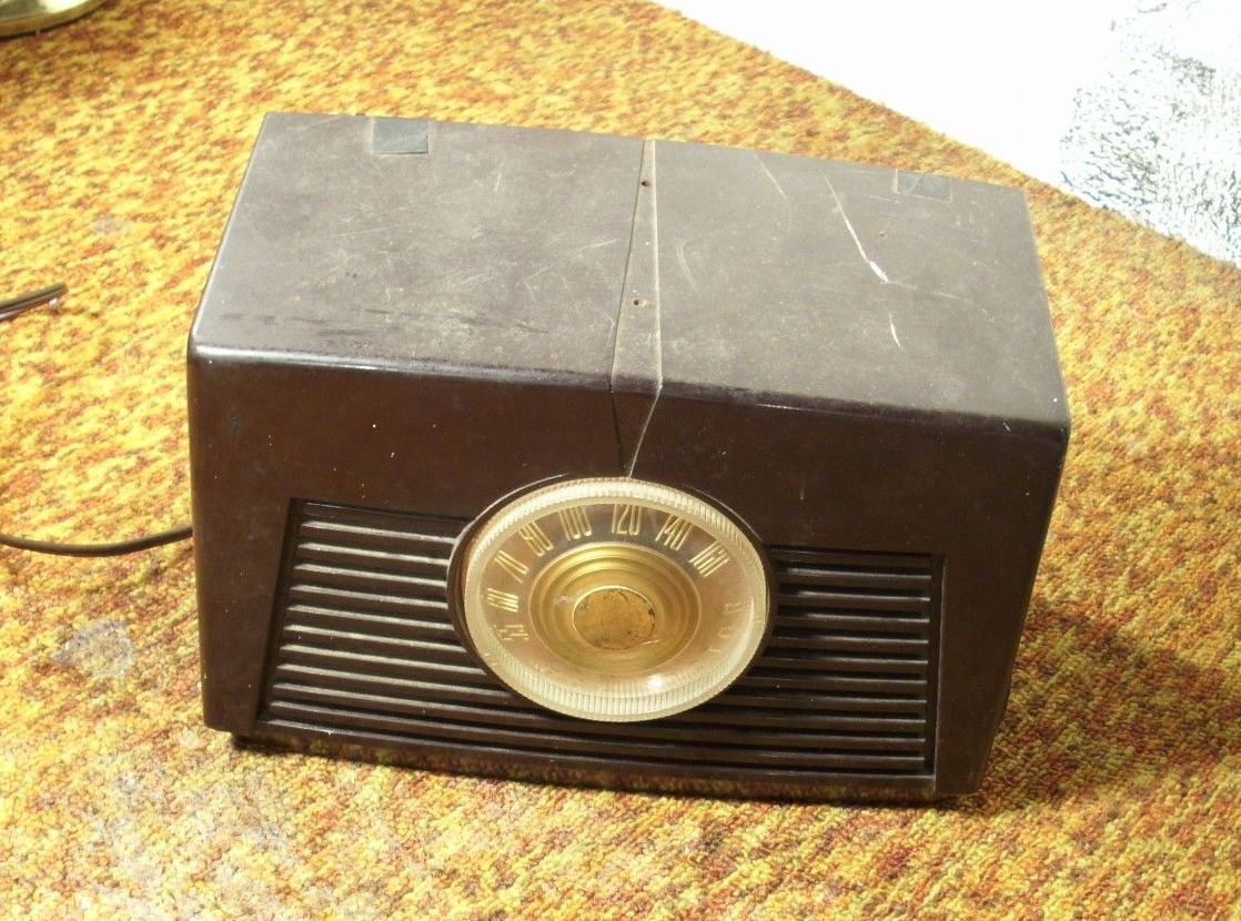 Repairs: Glued and stabilized case, replaced Electrolytic and all Paper/Wax Capacitors, re-painted with a black hammered spray pint, replace bad 50L6 output tube, founds replacement brass pointer/trim, and did full AM alignment.
